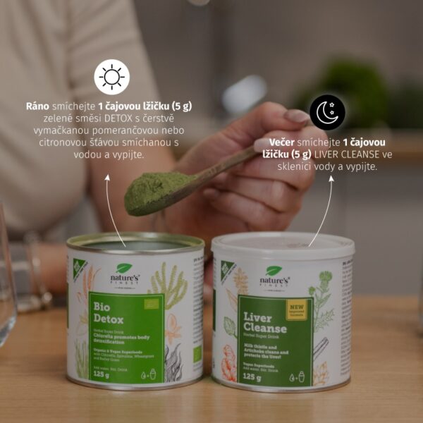 Večer smíchejte 1 čajovou lžičku (5 g) LIVER CLEANSE ve sklenici vody a vypijte. Tím podpoříte čištění jater přes noc a co nejlépe využijete čas odpočinku.