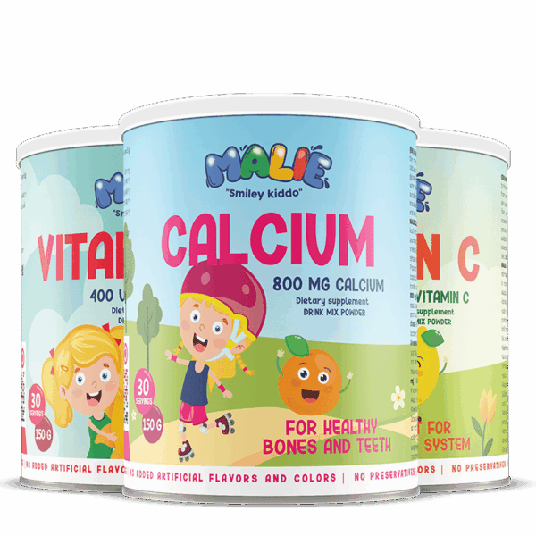 MALIE Vápník chutná skvěle po čerstvých pomerančích. Malie Vitamín C má skvělou citronovou chuť. MALIE Vitamin D3 má vynikající chuť šťavnatých jahod.