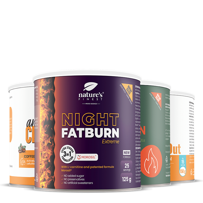 • Night FatBurn: hubnoucí formule, která podporuje hubnutí a pomáhá stabilizovat tělesnou hmotnost.⁶ S patentovanou formulí Morosil®, extraktem z červeného vína, L-karnitinem a extraktem z kozlíku, který pomáhá udržovat přirozený spánek a přispívá k optimálnímu uvolnění.