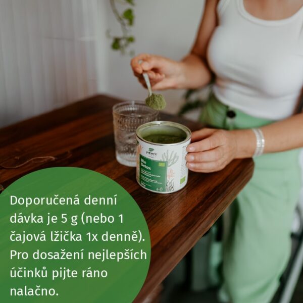 5 g (1 čajová lžička 1x denně). Pro nejlepší účinky užívejte ráno na lačný žaludek. Pro lepší chuť smíchejte s čerstvě vymačkanou citronovou nebo pomerančovou šťávou, nebo s vodou.