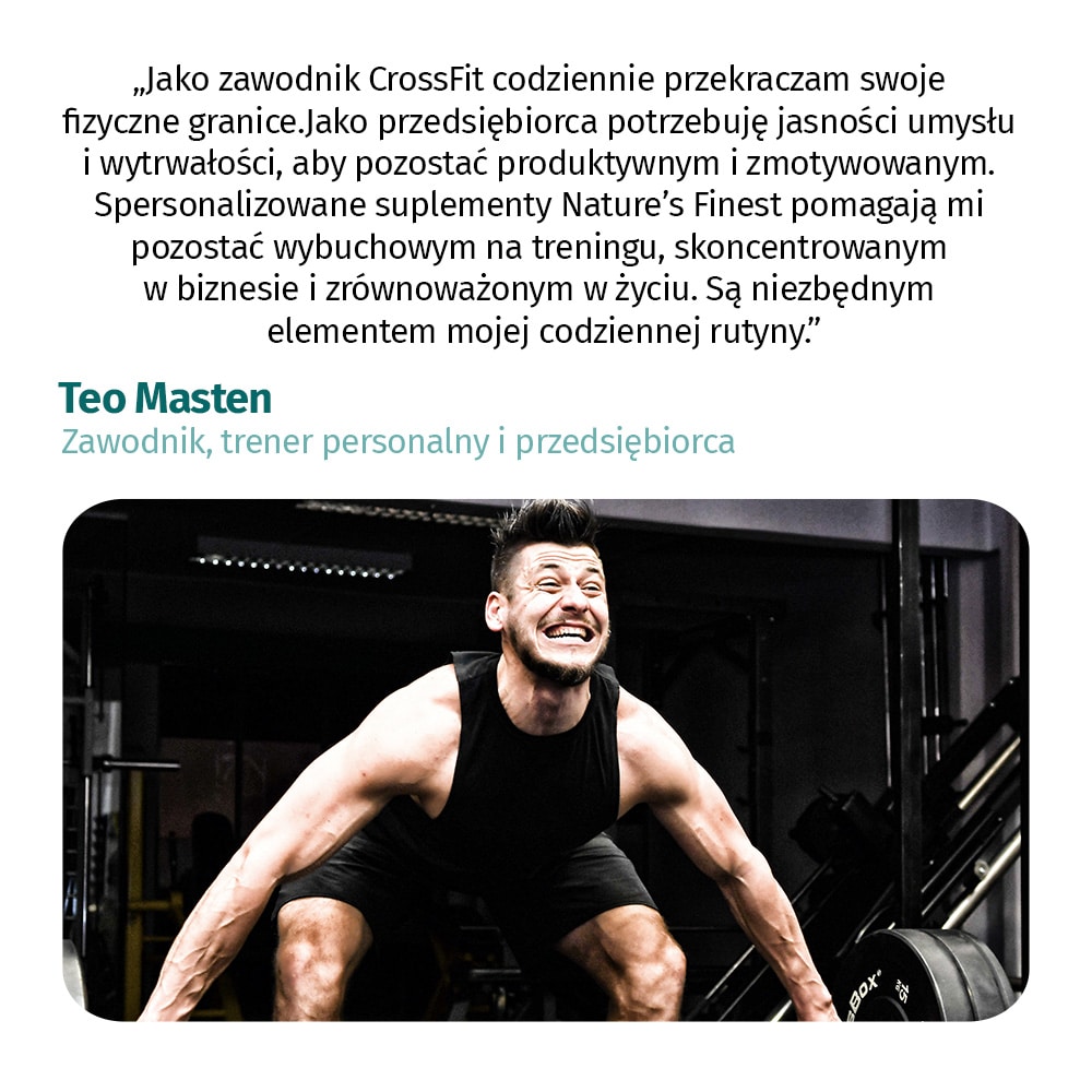 „Jako CrossFit závodník posouvám každý den své fyzické limity. Jako podnikatel zase potřebuji mít čistou hlavu a výdrž, abych zůstal produktivní a motivovaný. Personalizované doplňky Nature’s Finest mi pomáhají být výbušný na tréninku, soustředěný v byznysu a vyrovnaný v životě. Jsou nezbytnou součástí mé každodenní rutiny.“
