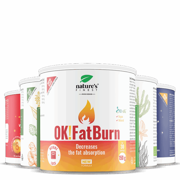 Před obědem vmíchejte 1 odměrku (5 g) OK! FATBURN nápoj ve sklenici vody.
