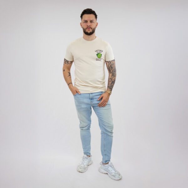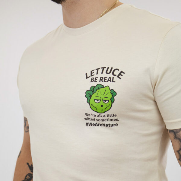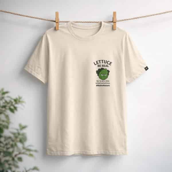 Béžové tričko navržené pro nenucený každodenní styl. S nápisem „Lettuce Be Real“ a jemnou, hravou grafikou oslavuje autenticitu a to, že zůstáváte sami sebou.
