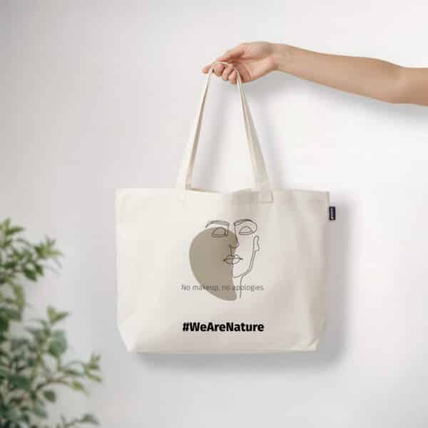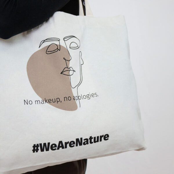 Nadčasová plátěná taška, která oslavuje autenticitu a sebevyjádření. S minimalistickou liniovou kresbou klidné tváře hrdě nese poselství „Bez make-upu, bez omluv,“ a povzbuzuje nás, abychom přijali své přirozené já.
