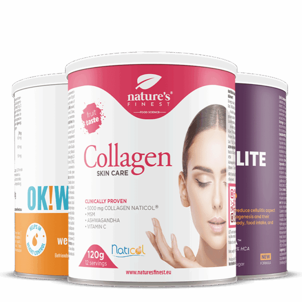 Prvních 15 dní rozmíchejte ráno ve sklenici vody 2 odměrky (10 g) nápoje OK!WaterOut s příchutí ananasu. Poté po dobu následujících 12 dní rozmíchejte 2 odměrky (10 g) SkinCare Collagenu ve sklenici vody odpoledne nebo večer, nechte kolagen 2 minuty zcela rozpustit a vypijte. Nápoj má příjemnou jahodovou chuť. S 10 g prášku spotřebujete 5 g kolagenních peptidů Naticol.