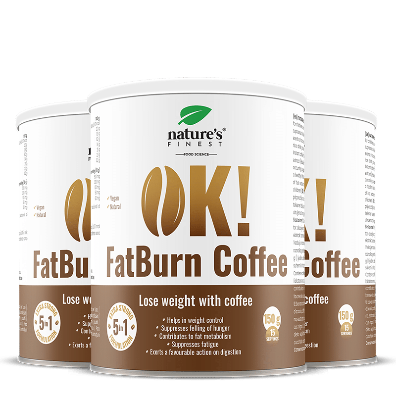 Smíchejte 10 g (1 polévkovou lžíci) směsi OK!FatBurn Coffee v 150 ml teplé vody nebo (rostlinného) mléka.