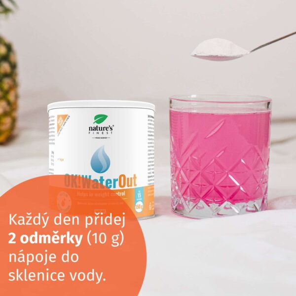 Každý den si do sklenice vody odměřte 2 odměrky (10 g) nápoje OK!WaterOut.