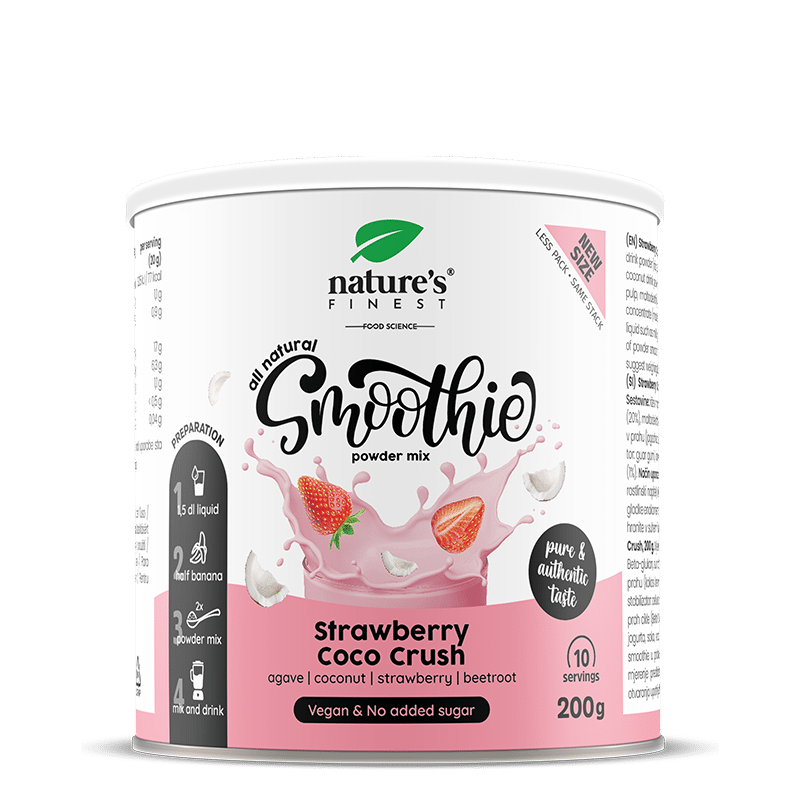 Jednoduše vezměte sklenici, naplňte ji vodou nebo rostlinným mlékem, přidejte svou oblíbenou směs na smoothie (2 polévkové lžíce) a půlku banánu, rozmixujte v mixéru a vychutnejte si ji!